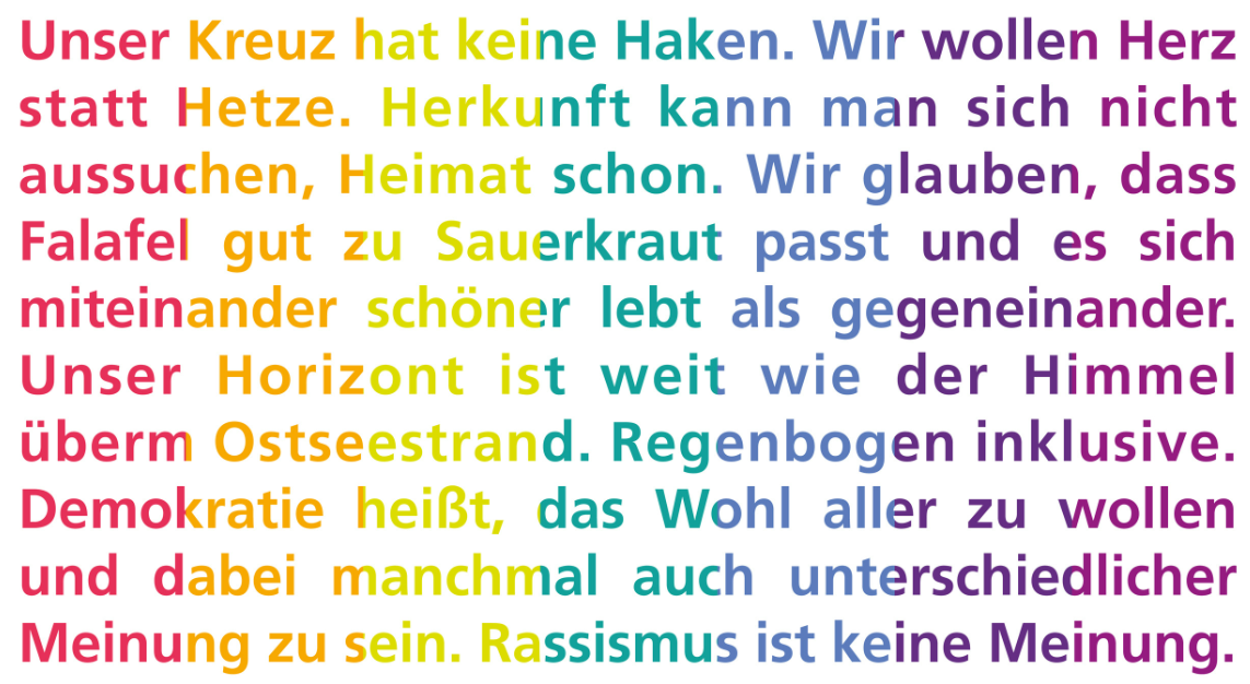 Stehen wir gemeinsam zu unseren freiheitlichen demokratischen Werten, zeigen Flagge gegen rechte Hetze und stehen für ein buntes weltoffenes Burgwedel-